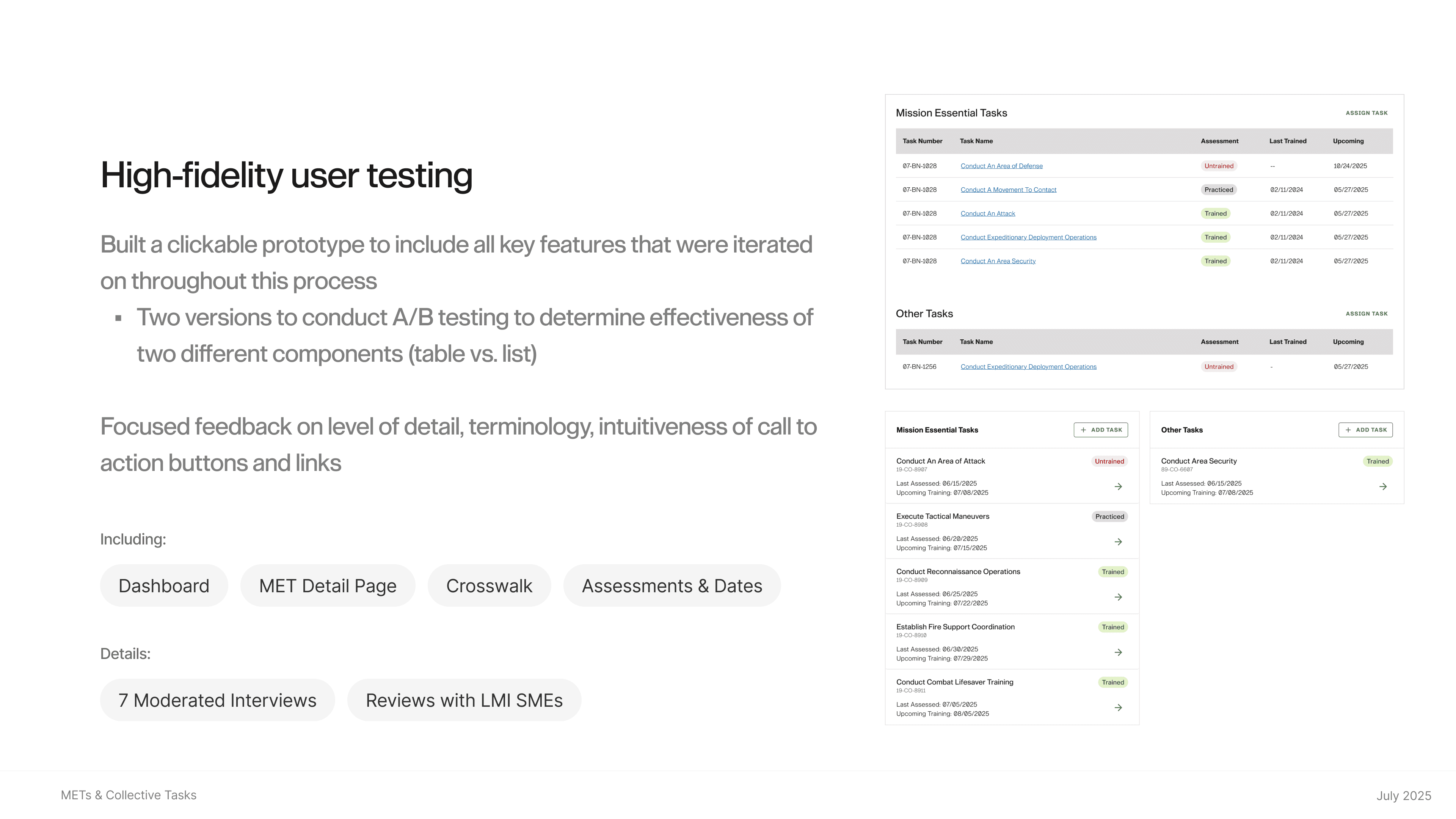 Led a full-cycle UX design process to create a new task management system for soldiers, enabling efficient task tracking and allowing commanders to monitor sub-unit progress and mission readiness.